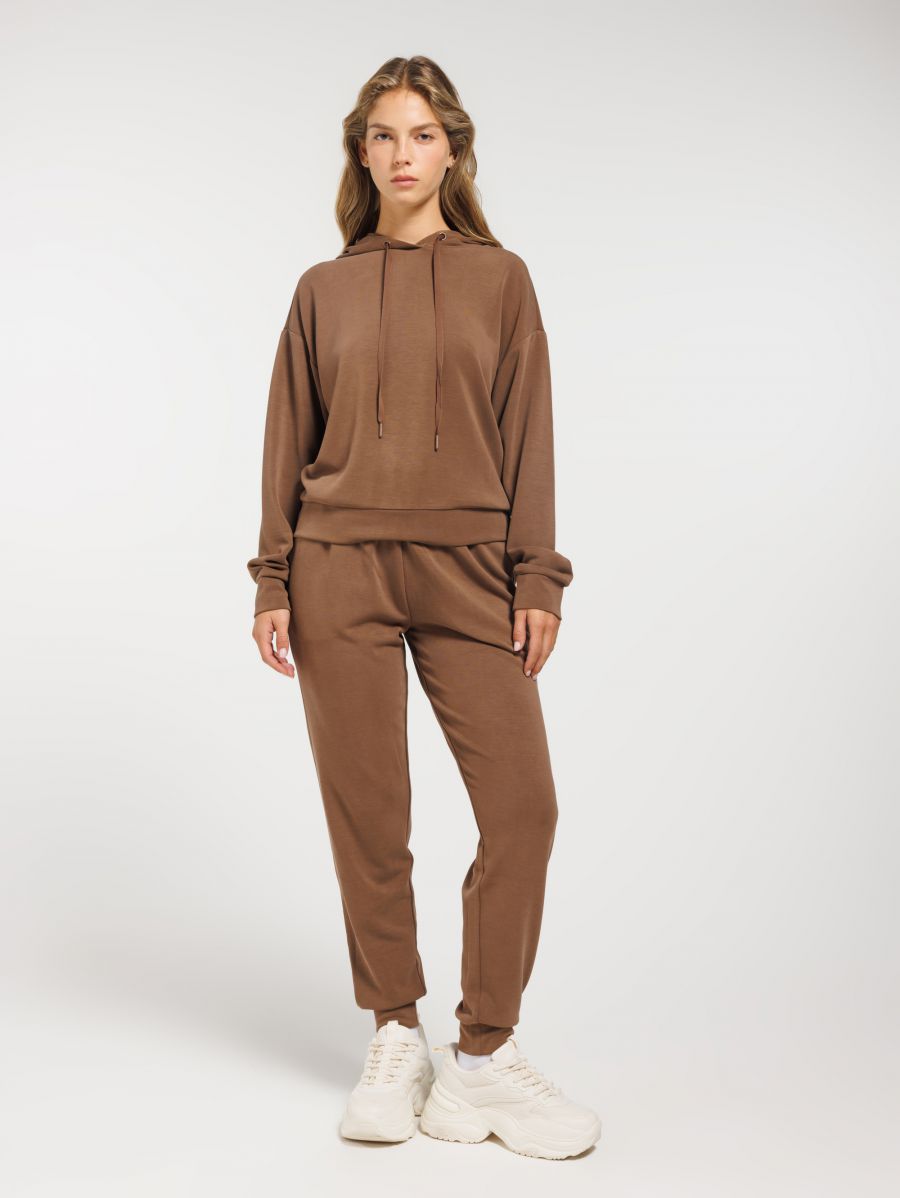 מכנסיים ארוכים בגזרת טרנינג קלאסית למראה ספורטיבי בשלוב בד מודל רך ונעים. למכנסיים כיסים בצדדים, סיומת מנג’ט, גומי ושרוכי הידוק במותניים. לטוטאל לוק, שלבי עם הסווטשירט התואם.