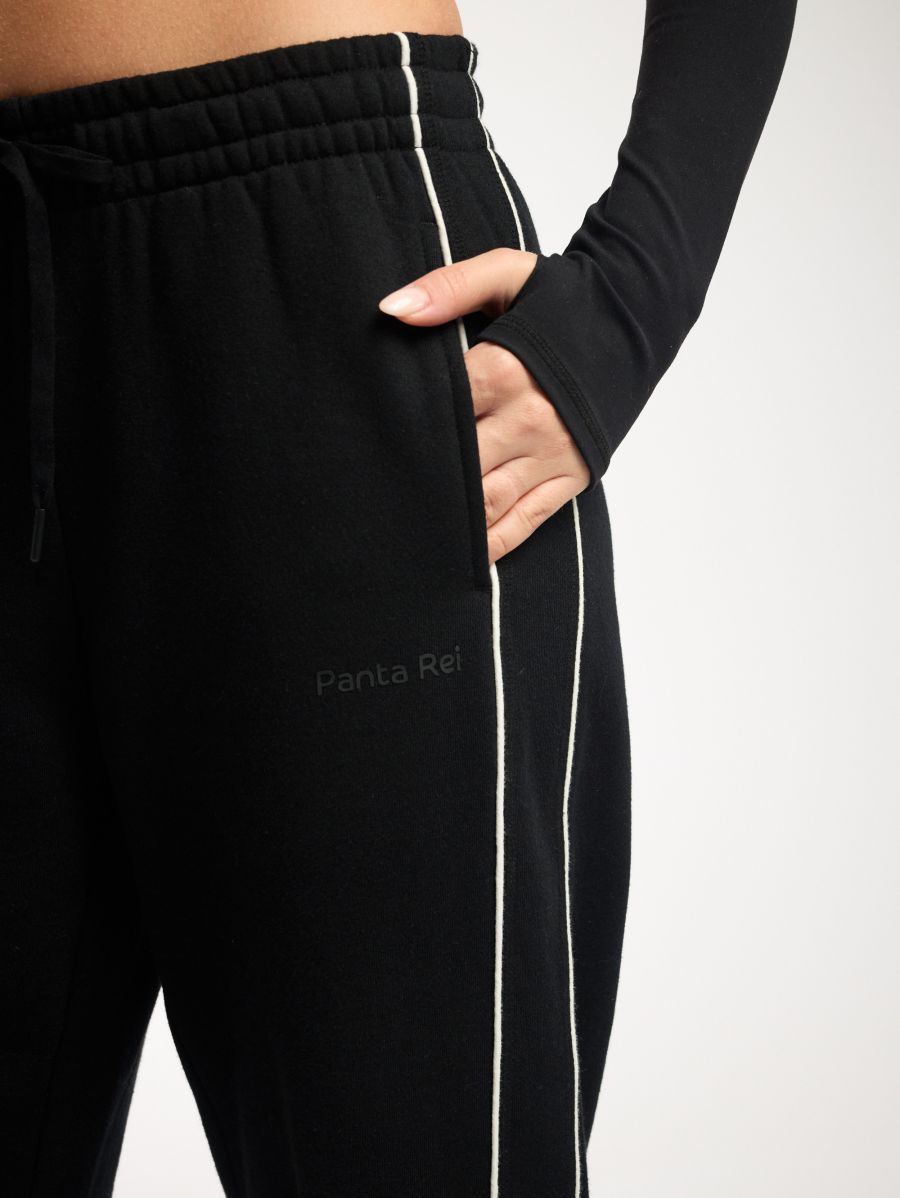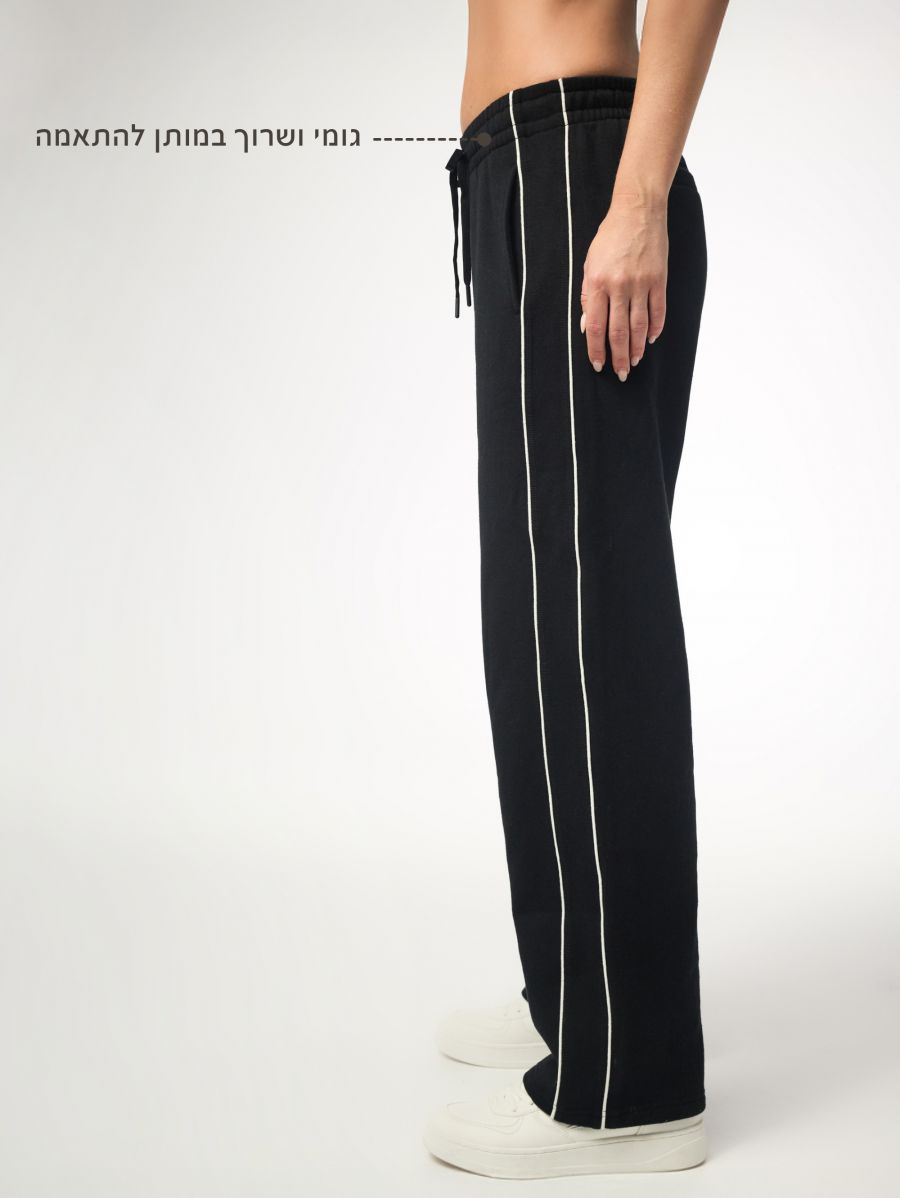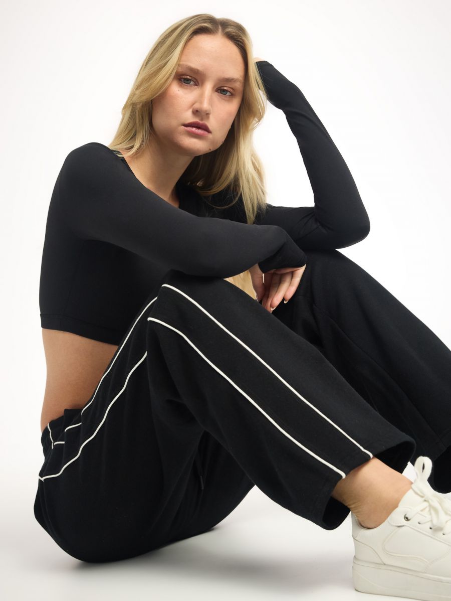 סווטשירט רך ונעים עשוי כותנה בגזרה רחבה ונינוחה, עם תפרי פייפינג לבנים לאורך הכתפיים והשרוולים. שרוולים ארוכים עם פתח לאגודל, סיומת מנג’ט בשרוולים ובמכפלת, עם שסעים קטנים בצדדים לתנועה נוחה. שיק ספורטיבי עם נוחות מקסימלית. שלבי עם מכנסי הטרנינג התואמים.