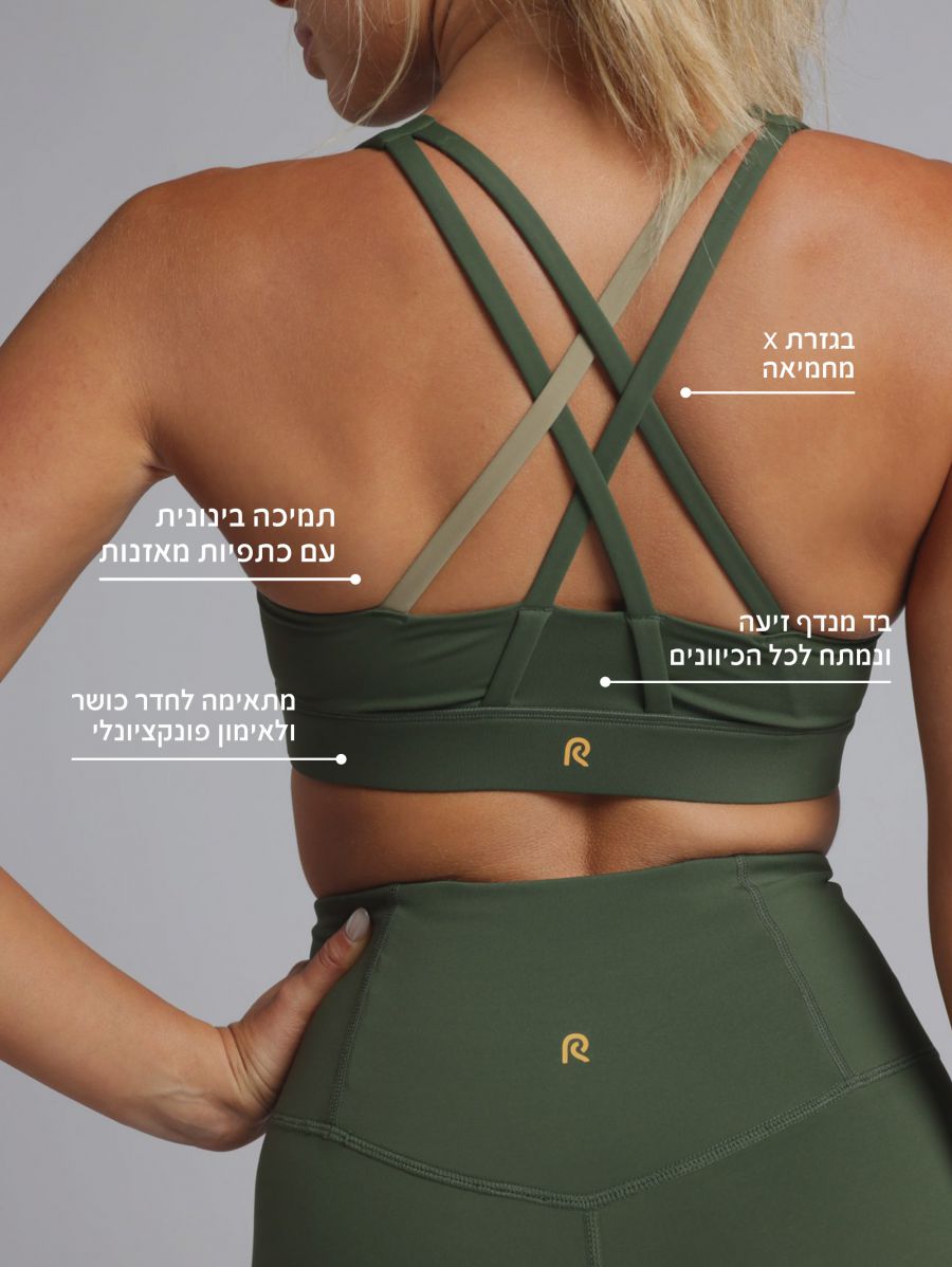 חזיית ספורט עם מחשוף מרובע, מספקת תחושה מוחזקת ומאווררת בעת ובעונה אחת. עשויה מבד nero קריר שמחטב את הגוף ואוסף אותו, ומיועדת לאימוני כושר קלאסיים.